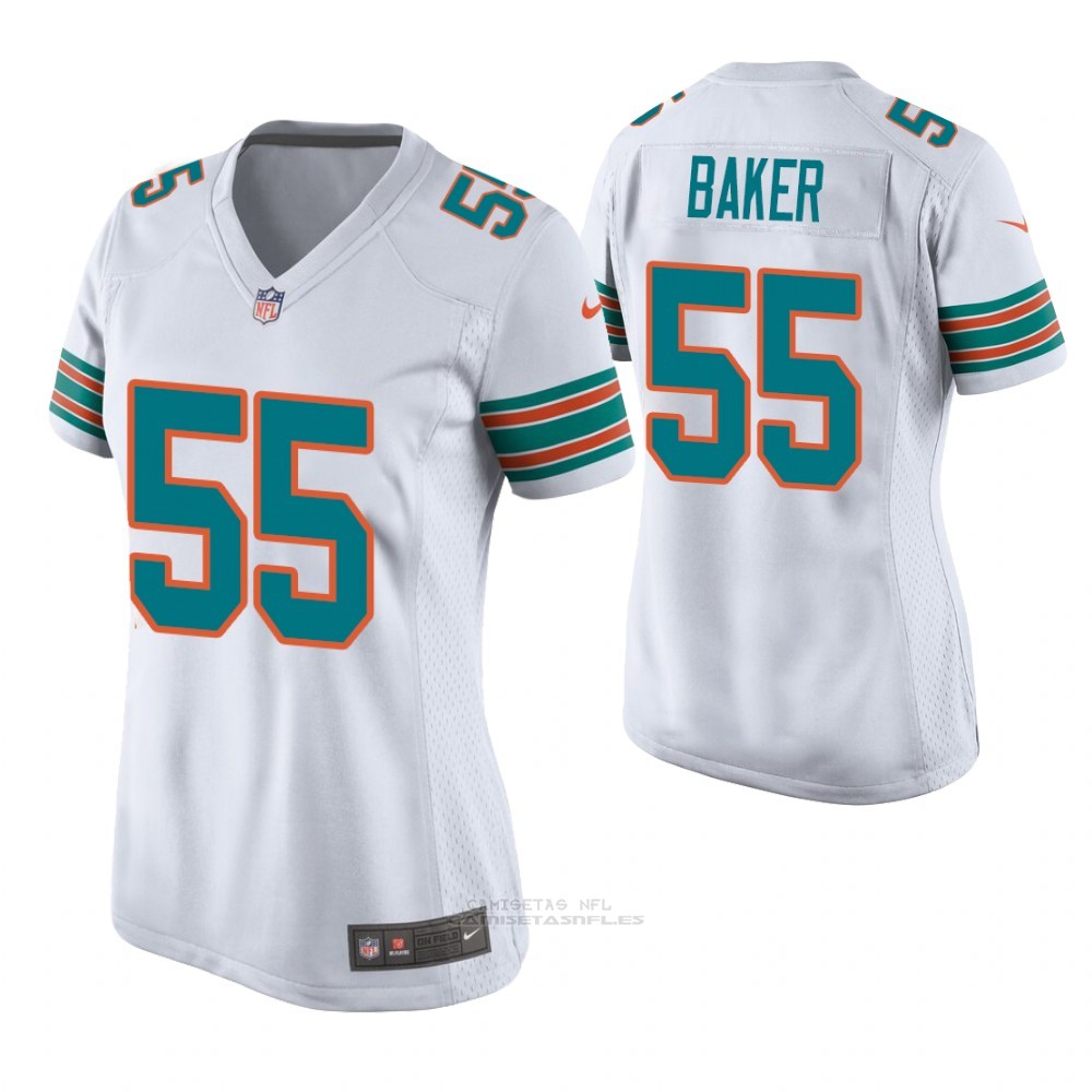 Camiseta NFL Game Mujer Miami Dolphins Jerome Baker Throwback Blanco