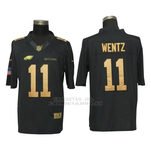 /  Camiseta NFL Gold Limited Hombre Philadelphia Eagles 11 Wentz Negro